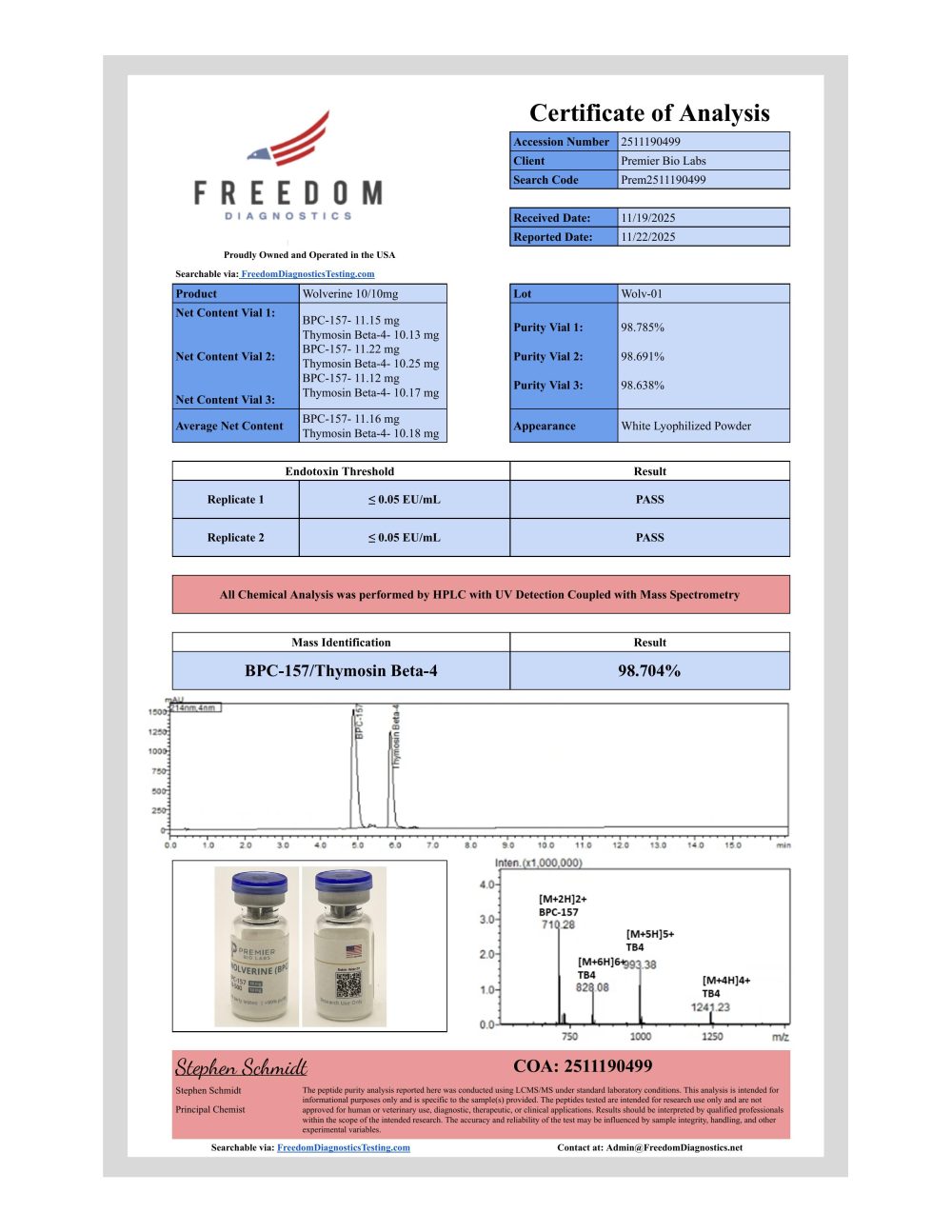 • Identity Verification – HPLC and Mass Spectrometry confirm molecular structure