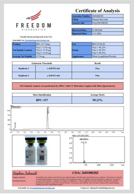 Trust starts with transparency. Premier Bio Labs subjects every batch to comprehensive third-party testing before release, ensuring the materials powering your research meet pharmaceutical-grade standards.