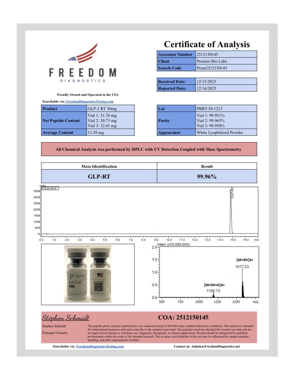 – Synthesized in FDA-registered facilities under cGMP protocols